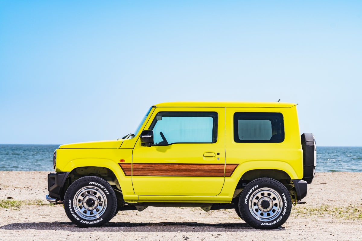 ジムニーならではの多彩なボディカラーを最大限に活かし、鮮やかなキネティックイエローと煌びやかなアイテムを組み合わせて、街中でもオフロードでも際立つスタイルを実現しました。