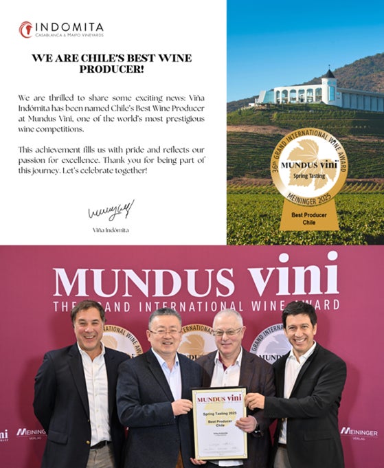 『インドミタ』がムンドゥス・ヴィニ スプリング・テイスティングで最優秀チリ生産者賞を受賞いたしました