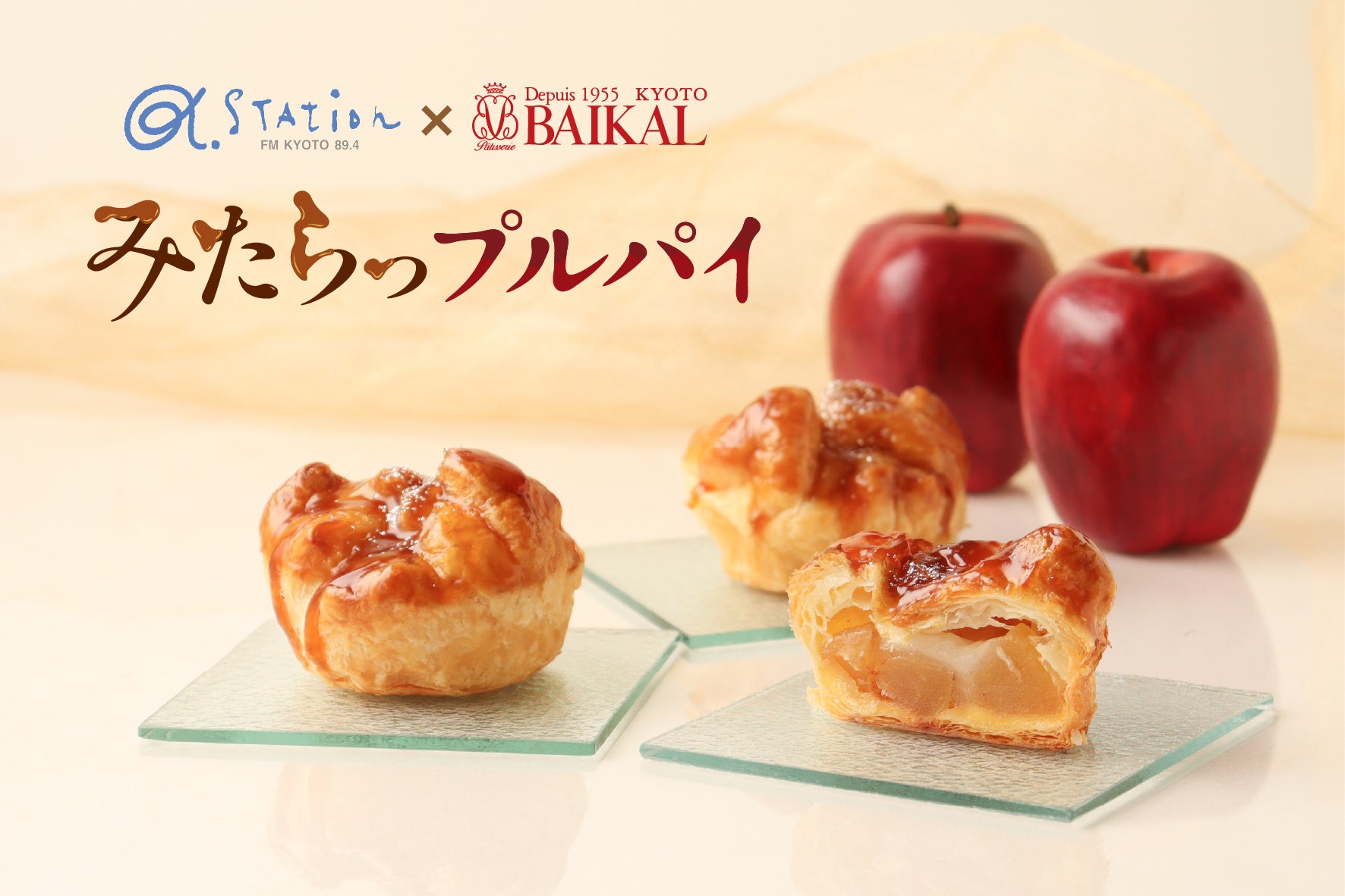 1955年、京都・下鴨で創業し、現在7店舗を展開する株式会社バイカル(本社:京都府京都市、代表取締役社長:岩井一路)は、京都府を放送対象地域とするFMラジオ局「FM京都(α-STATION)」の人気ラジオDJ、川原ちかよ氏とのコラボレーション商品「みたらっプルパイ」を、2025年7月1日(火)より直営店舗およびバイカルカフェにおいて期間限定で販売いたします。