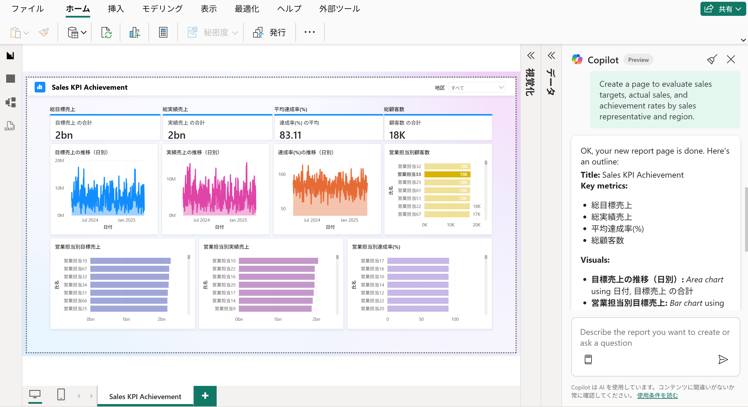 Copilotが分析レポートを自動作成し、分析業務を効率化できる(Power BIの管理者の負担軽減)