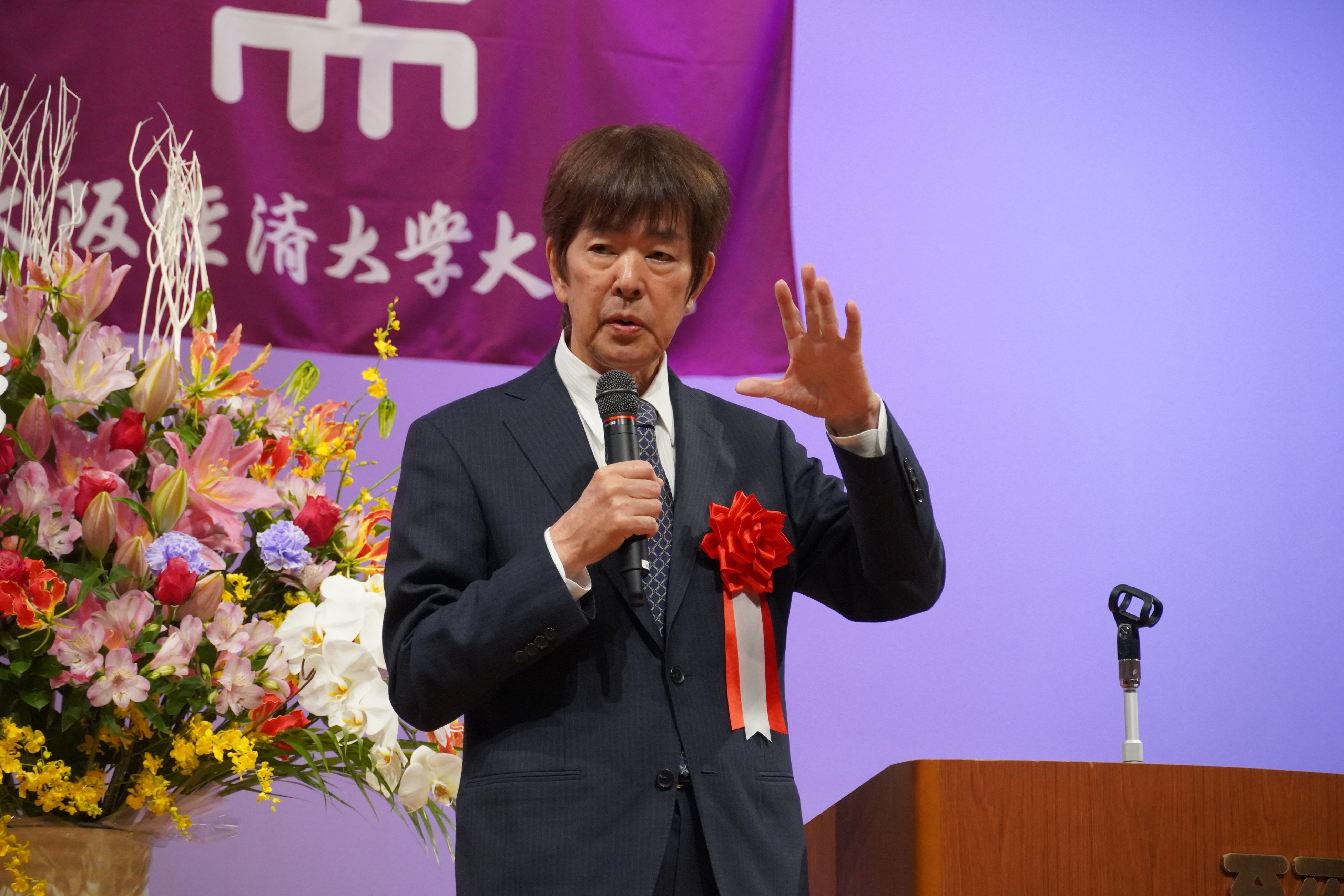 2025年11月1日(土)、本学同窓会・大樟会の90周年記念総会に、本学卒業生で株式会社ジャパネットたかた創業者である髙田明氏を迎え、特別講演が行われました。