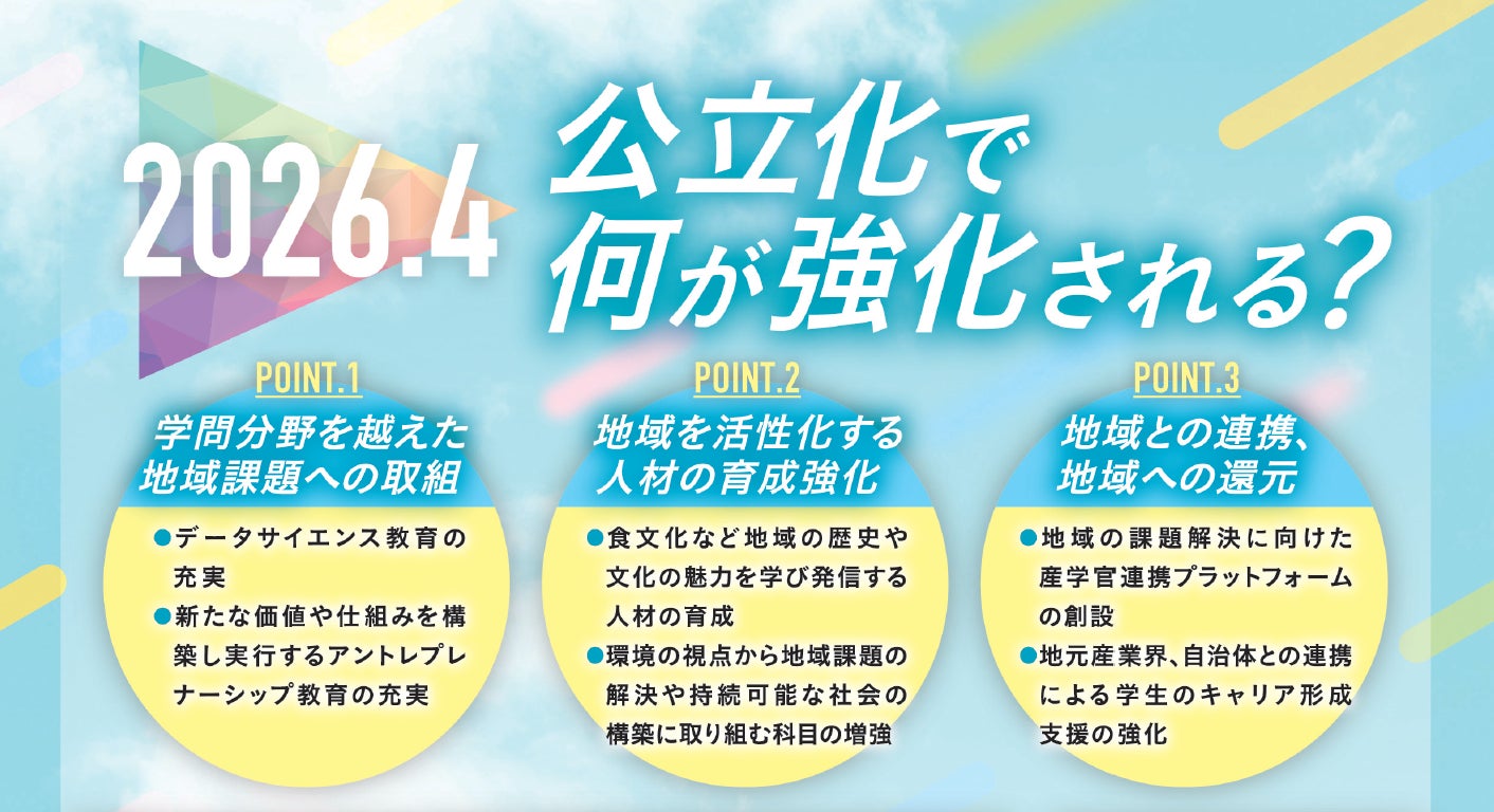 東北公益文科大学(以下、公益大)は、令和8年4月から公立大学として生まれ変わります。
