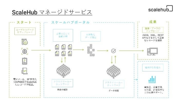 またScaleHubの提供する「ScaleHubマネージドサービス」は、24時間365日※2、世界150以上の言語に対応し、エンタープライズ処理能力を有しています。