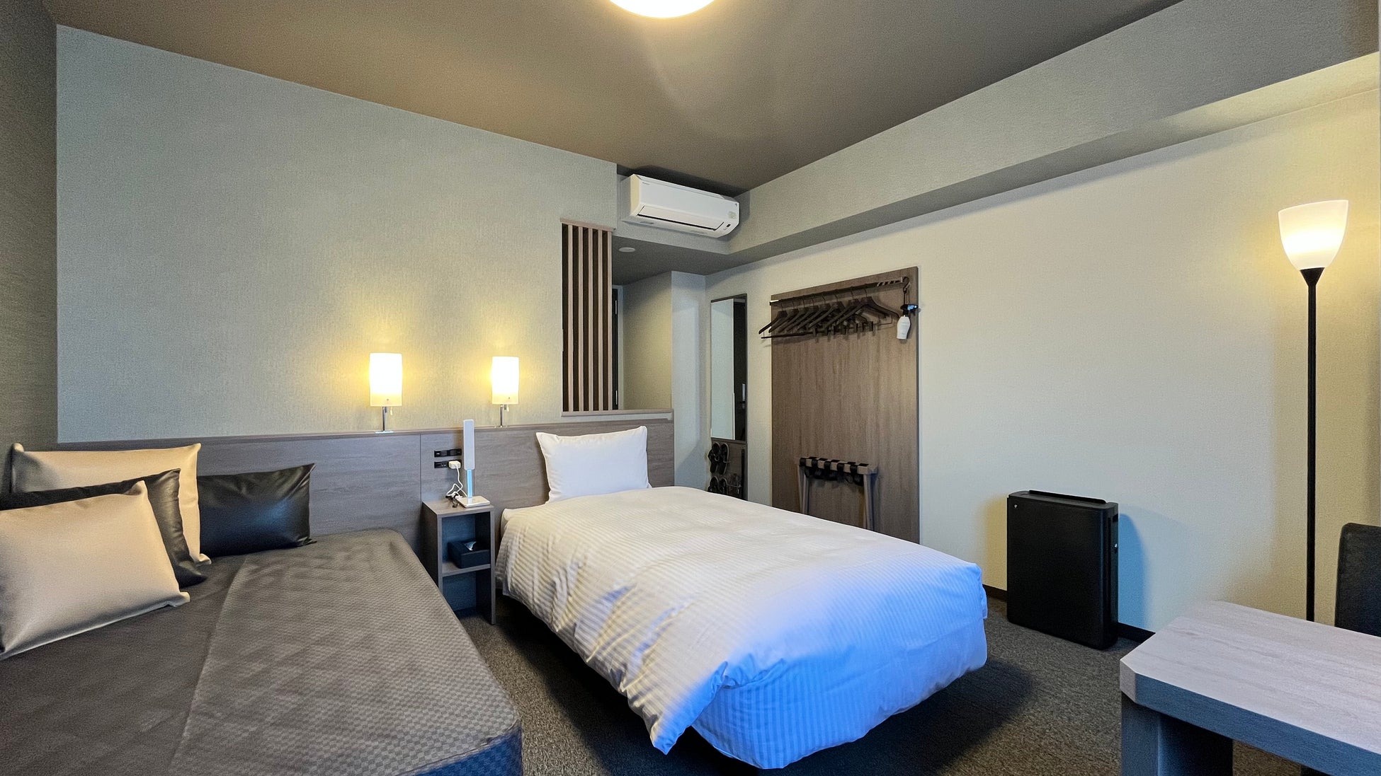 また、館内にはサウナ・水風呂付きの天然温泉大浴場を完備しているほか、常時30品目以上が並ぶバイキング朝食や、じっくり煮込んだこだわりの柔らかスペアリブが自慢の夕食レストランBiKuRaを備え、 皆様に心地よいホテルライフを提供いたします。