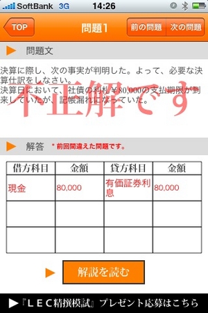『LEC商業簿記2級100問ドリル』は、iPhone/iPod touchアプリケーション