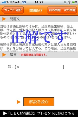 記録した「LEC簿記3級100問ドリル」に続く、iPhone/iPod touch向け