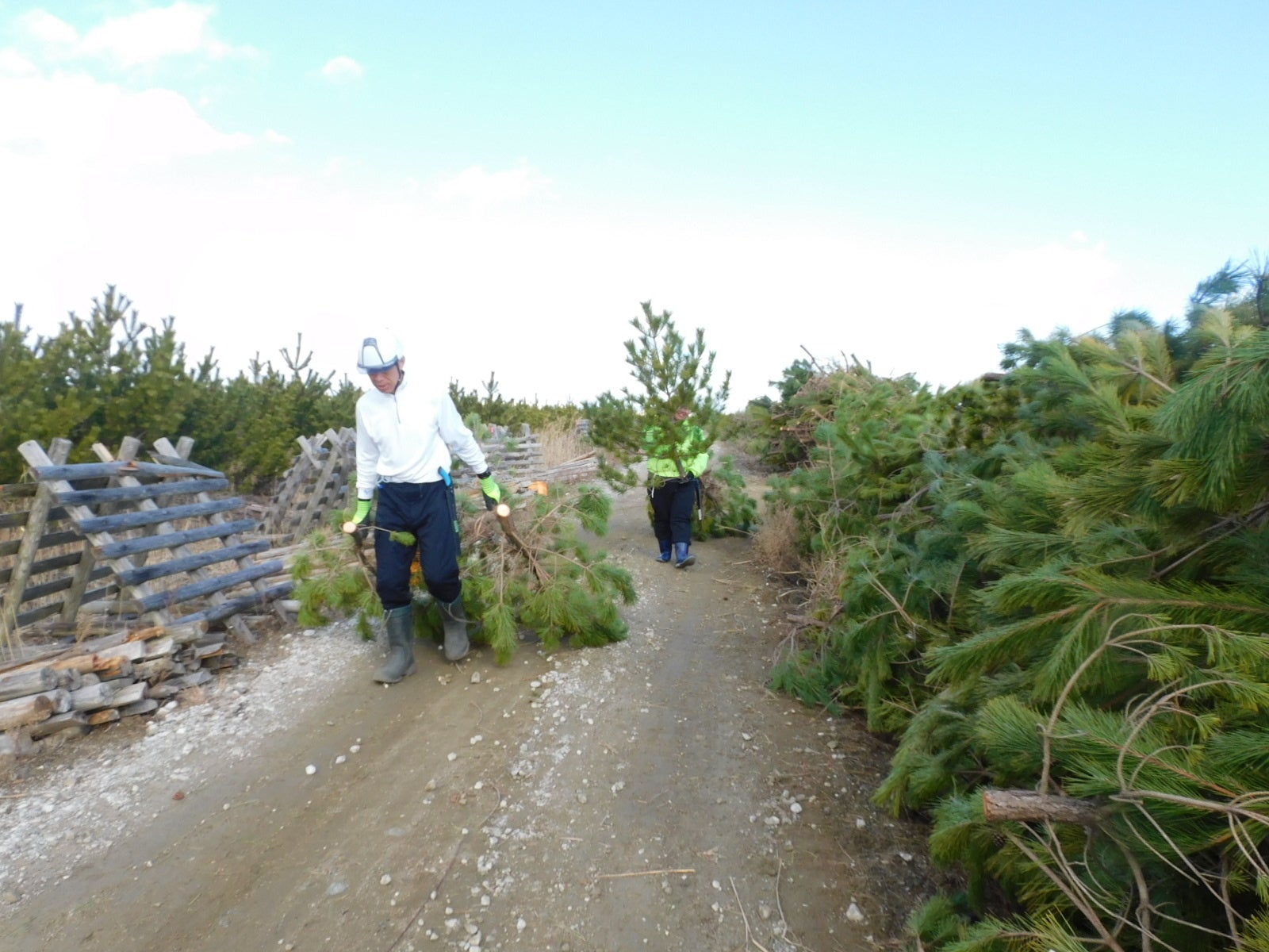 今、あの場所には市民や全国のボランティアによって育んできた海岸林が再生が進み、防災機能がより高いクロマツの林を育てるための間伐(本数調整伐)が今冬も行われています。