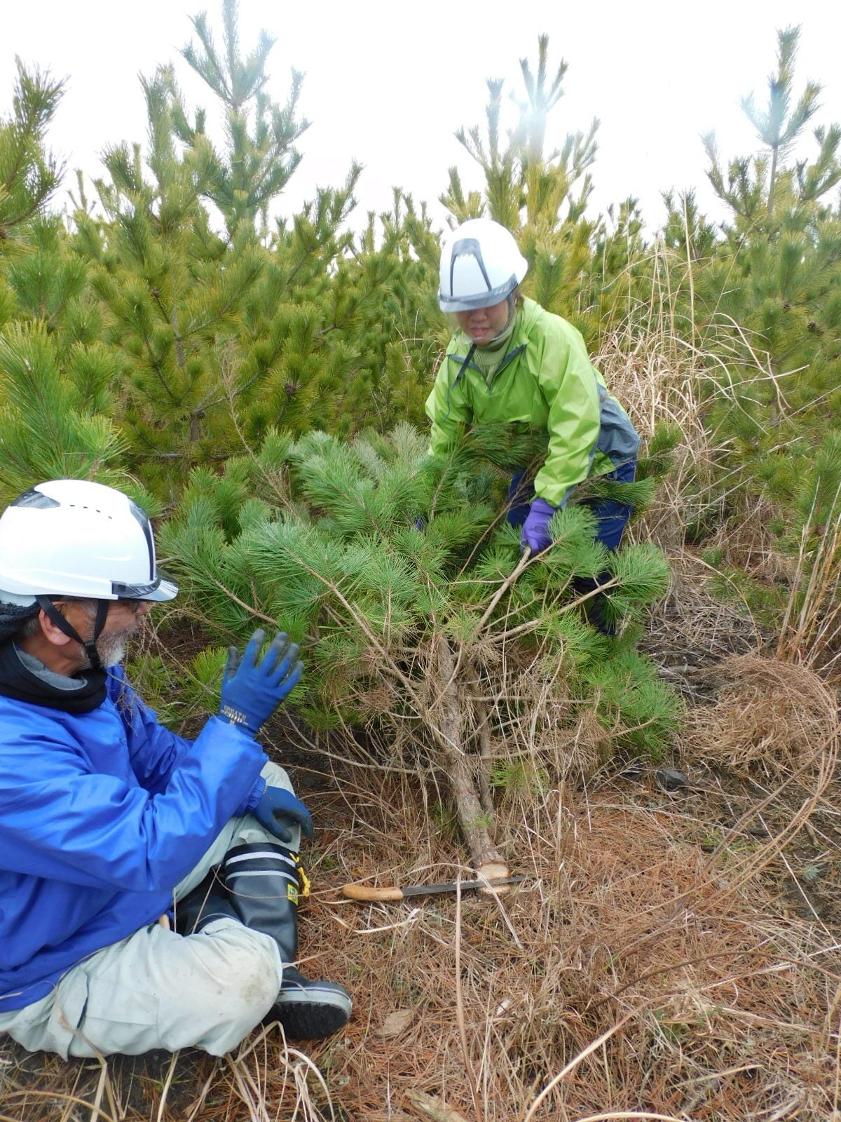 東日本大震災から5年後に植栽したクロマツの間伐にボランティアも参加しています