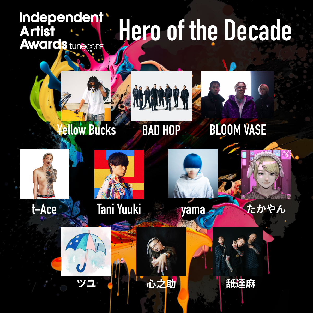 Tani Yuuki、yama、HoneyWorks、¥ellow Bucks、舐達麻、きゃない など、過去から現在まで最前線で活躍する多数のインディペンデントアーティストを11部門で表彰