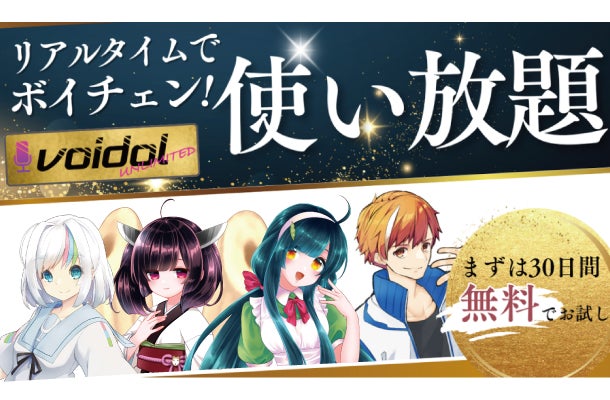 Voidol UNLIMITEDは初回契約時から30日間無料。自分の声を一人何役でもキャラクターを使い分けながらLIVE配信や動画制作、朗読などができるようになります。