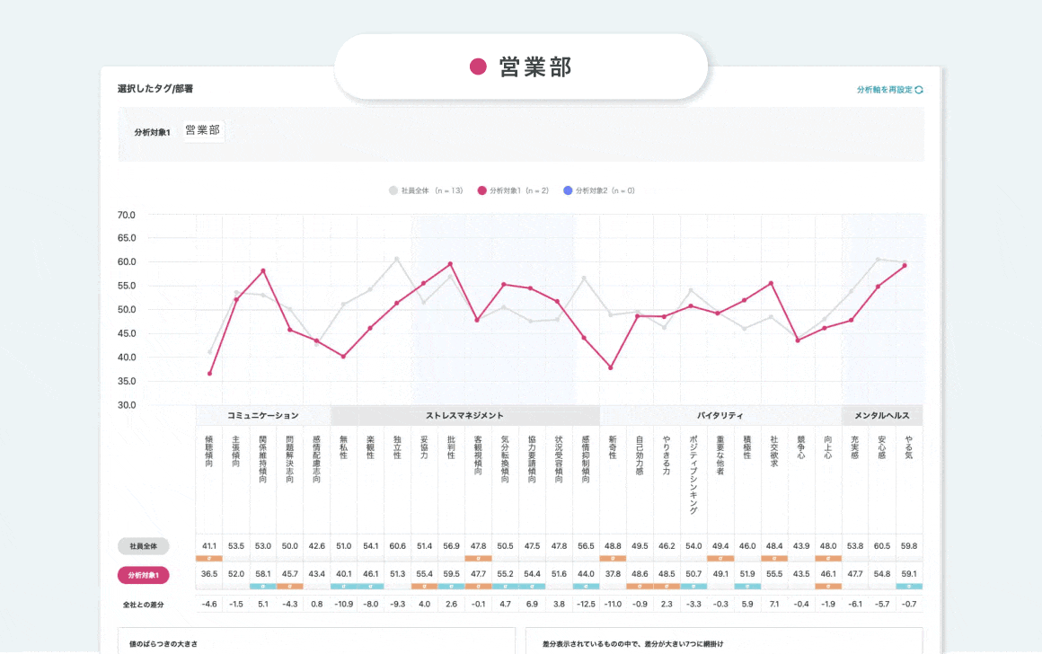 まず、社員に10分間の性格検査をご受検いただくことで、自社にどんな人材がいるのか明らかにします。