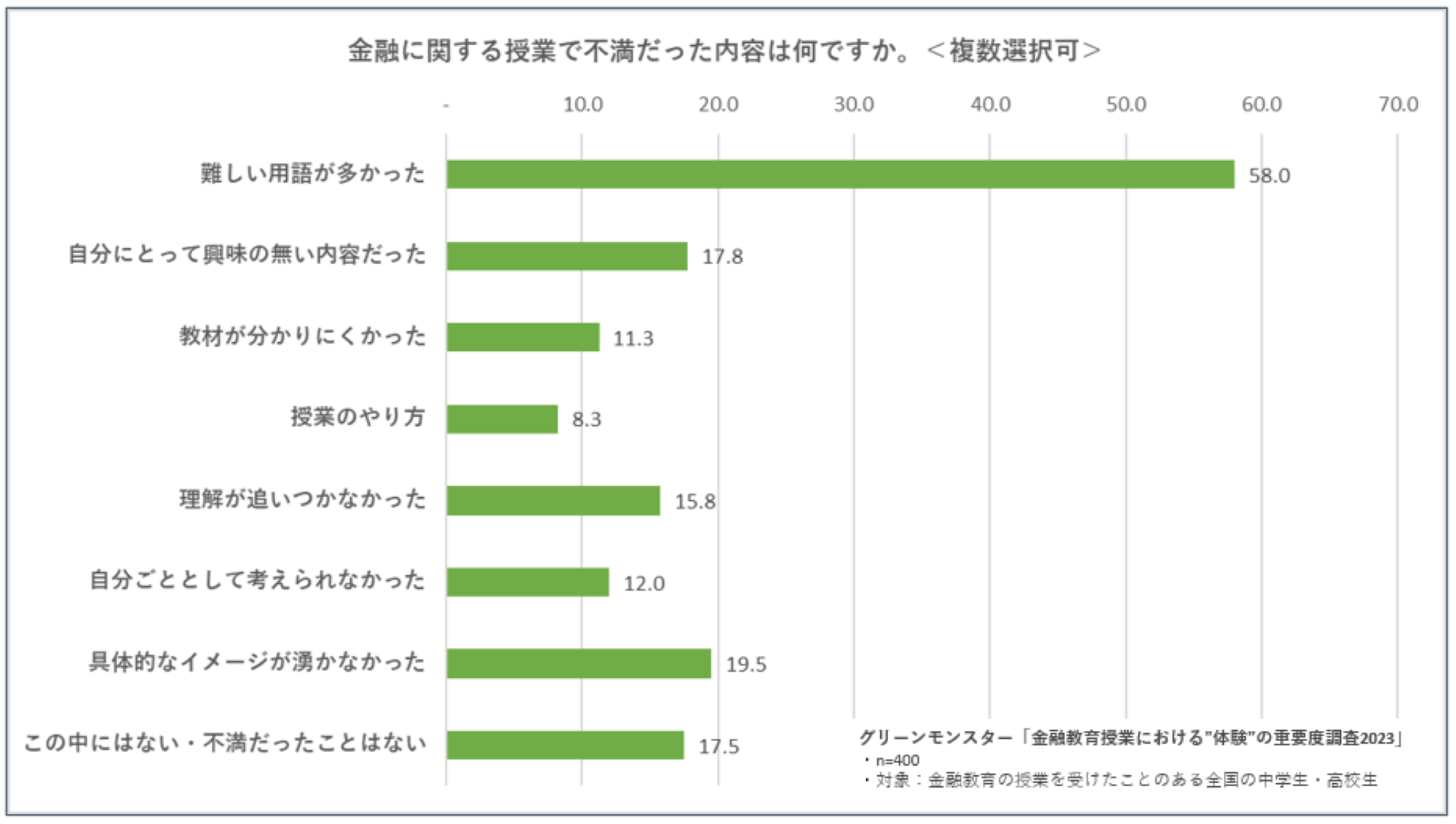 ◆金融に関する授業で不満だった内容は何ですか。<複数選択可>