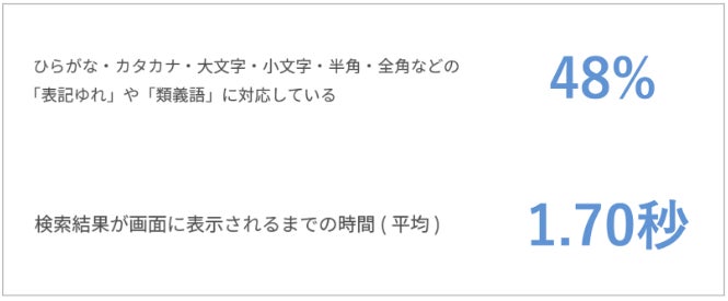48%のサイトで、ひらがな・カタカナ、⼤⽂字・⼩⽂字、半⾓・全⾓の「表記ゆれ」や、「類義語登録」など、検索精度向上の対応をしていました。