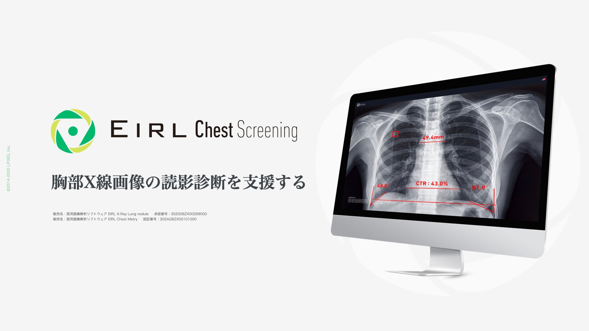 胸部X線画像の読影診断を支援するEIRL Chest Screening、肺結節候補域の検出と5つの計測機能を有する新モデルとして販売開始