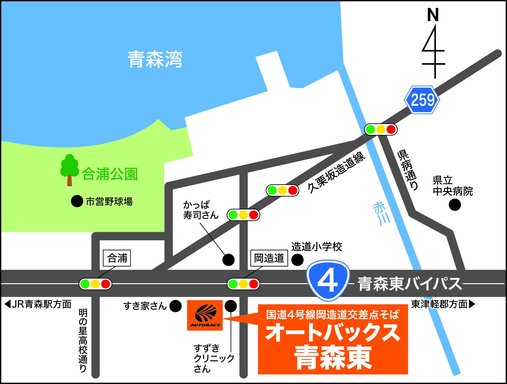 店舗はJR青森駅から東に直線約4.0km、国道4号沿いに出店し、タイヤ、オイル、バッテリーをはじめとしたカー用品に加え、カーライフの楽しさを提案する幅広い商品や、車検・整備などのサービスを展開いたします。自動車整備に関する知識と技術、提案力を備え、安心してクルマのメンテナンスをお任せいただける店舗として地域のお客様を全力でサポートいたします。
