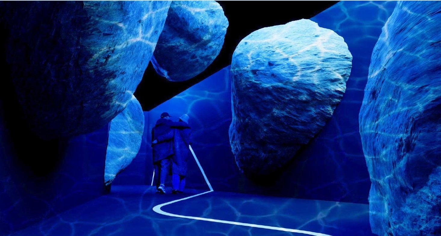 本特別展示の最大の見どころは、「GUESS AIRWASH™」を表現した巨大な“石のインスタレーション”です。「石から空気へ」というデニム加工の進化をダイナミックに体感いただけます。