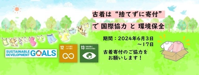 国際協力NGOわかちあいプロジェクト(一般社団法人、住所:東京都墨田区、代表:松木傑)は、2024年6月3日(月)~17日(月)の2週間、着なくなった衣類や布・革製品の寄付と、寄付金を受付します。
