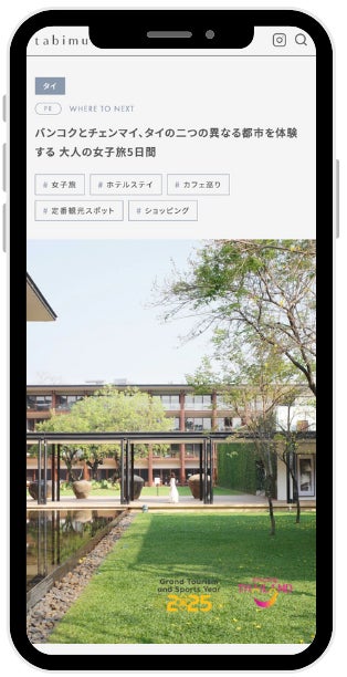 本記事では、“大人の女子旅”をテーマに、タイ旅行の定番であるバンコクに加え、おしゃれなカフェやリゾートホテルが立ち並び、女子旅にも最適なチェンマイを舞台とし、tabimuseならではの共感性の高い世界観で、2都市周遊旅の魅力を訴求。また、記事タイトルの設計や構成にもSEO戦略を取り入れ、検索流入からの新たなタッチポイントも創出し、周遊旅への関心とタイへの渡航意欲をさらに後押ししています。