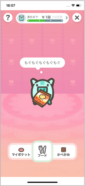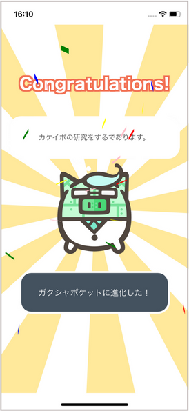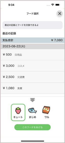 家計簿を入力することで3種類のフードに変えることができ、選択したフードはキャラクターに与えることができます。卵から育成が始まり、3段階の進化を経て卒業します。