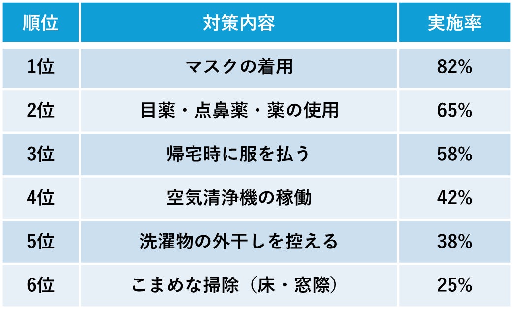 花粉症の対策として、多くの人がマスクの着用による外出時に花粉を体内に入れない対策を行っている。しかし、帰宅後も花粉による不快感が消えないのは、洋服や髪などに花粉が付着し、家に持ち込んでしまい「おうち花粉症」を引き起こしてしまうため。