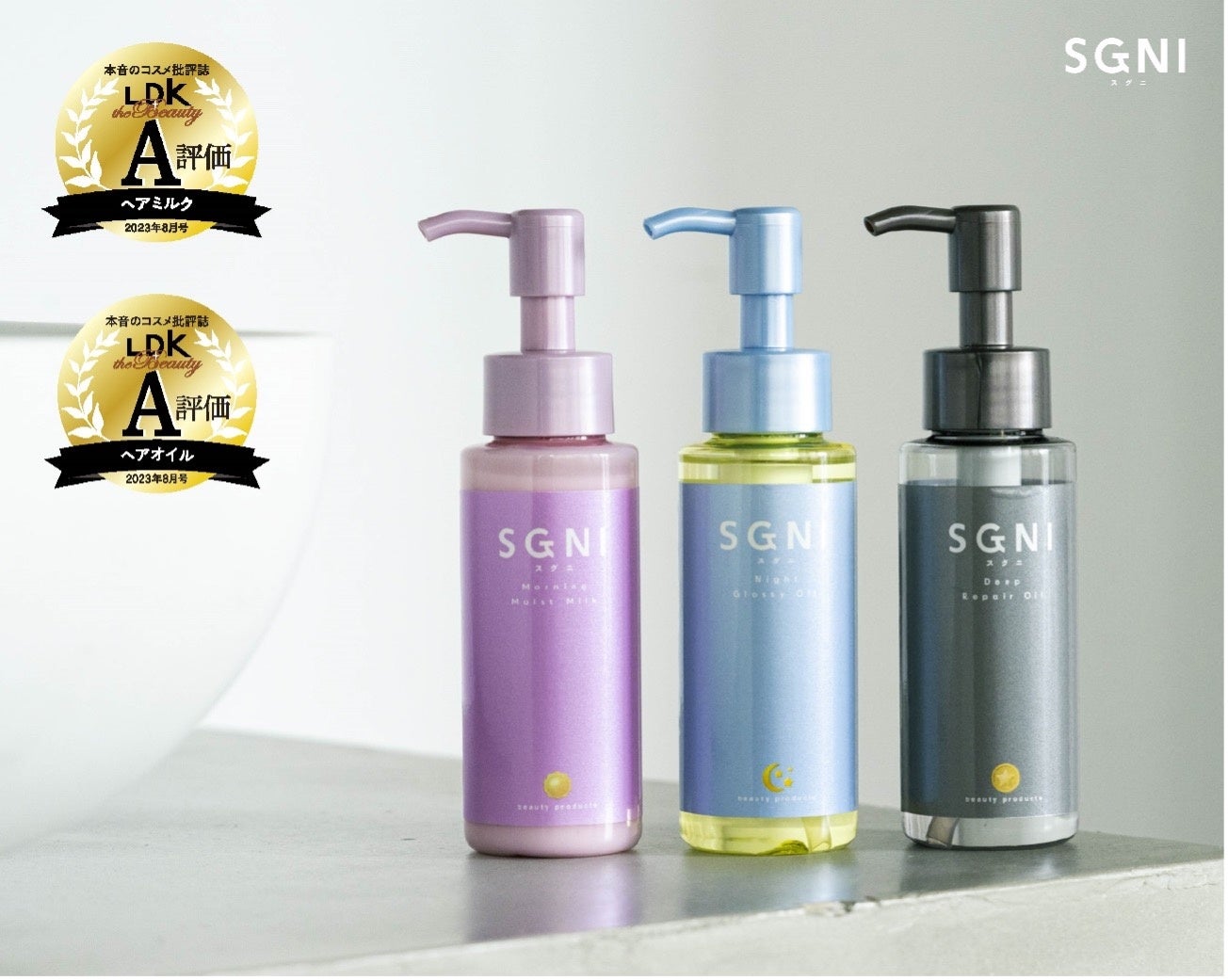 本音でコスメをテストして批評する美容雑誌『LDK the Beauty』では「SGNI モイストミルク」「SGNIグロッシーオイル」が共にA評価を獲得いたしました。(『LDK the Beauty』8月号 2023年6月28日発売 掲載)