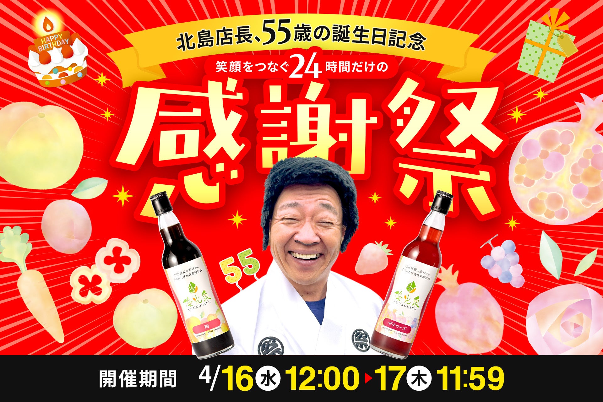 本キャンペーンでは、4月12日に55歳を迎えた北島店長が今もっともおすすめしたい酵素ドリンク「優光泉 梅」と「優光泉 ザクローズ」を、特別価格の5,500円(税込)でご提供。さらに、16日18時からは公式Instagramにてライブ配信を実施し、「10セット売れないと帰れません!」チャレンジに挑戦します。
