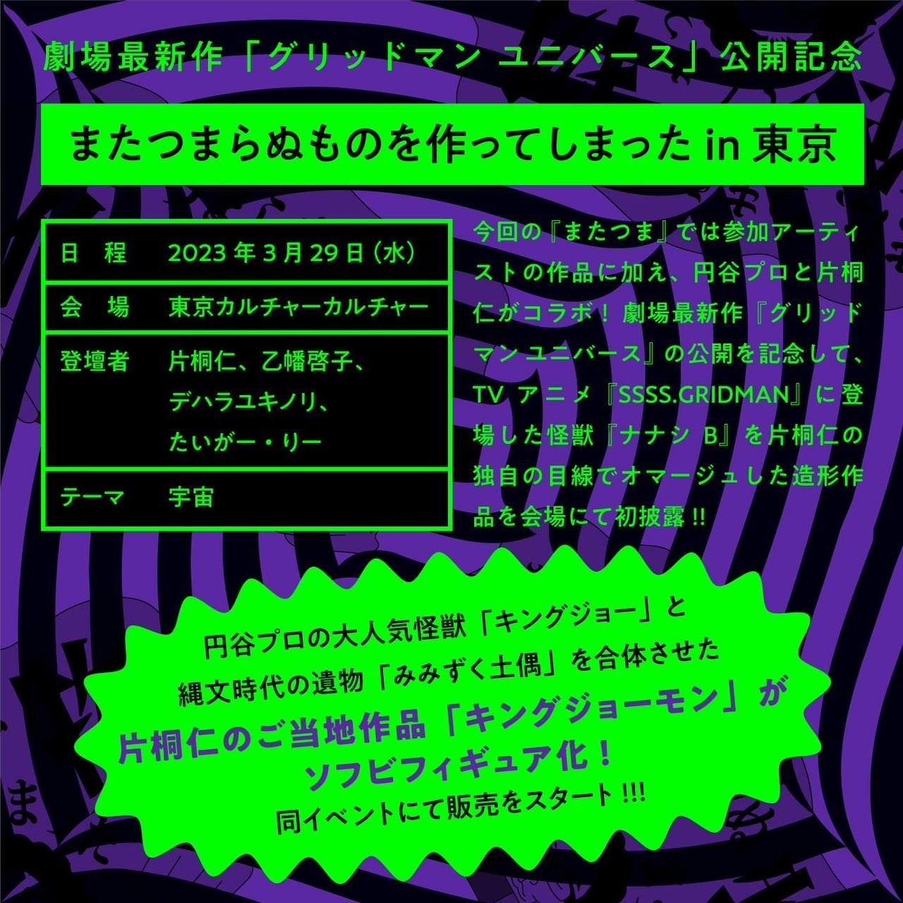 『グリッドマン ユニバース』に先駆けた劇場編総集編が大ヒット公開中のTVアニメ『SSSS.GRIDMAN』に登場した怪獣「ナナシB」をオマージュした新たな怪獣が、片桐仁の手で大胆にリニューアル!。「ナナシB」がこんな怪獣になるとは!!驚きと笑いが詰まった新怪獣の原型を「またつま」イベント内でお披露目。乞うご期待!