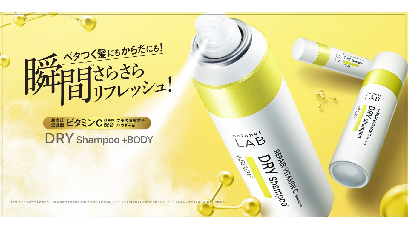 スキンケア発想×先端テクノロジーの融合で生まれたヘアケアシリーズ[ unlabel LAB(アンレーベル ラボ)]よりが夏季数量限定のドライシャンプー「アンレーベル ラボ V リペア ドライシャンプー(95gと40gの2サイズ展開)」が好評発売中です。