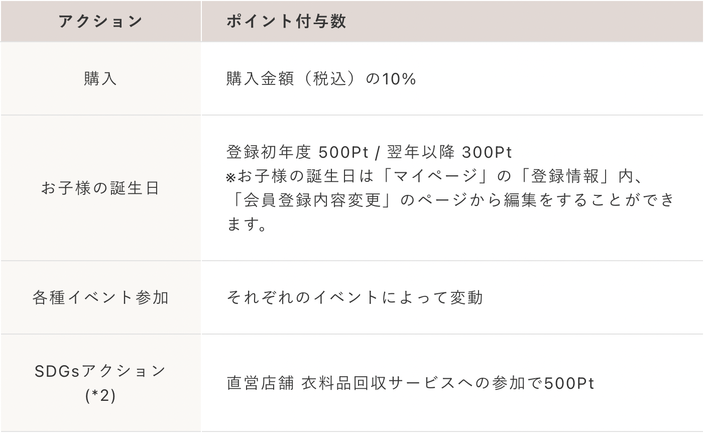 ポイントは、製品の購入のみならず、お子様のお誕生日や、Yomが企画したイベントに参加いただくなど様々なアクションで累積します。