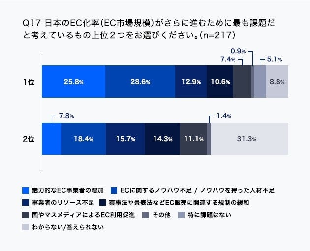・日本のEC化率における課題として最も大きかったのは“ノウハウ不足”による遅れ