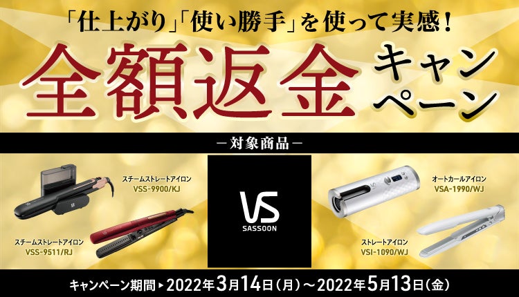 対象のヴィダルサスーンヘアアイロンを試せるチャンス!【「仕上がり」「使い勝手」を使って実感!全額返金キャンペーン】実施のお知らせ