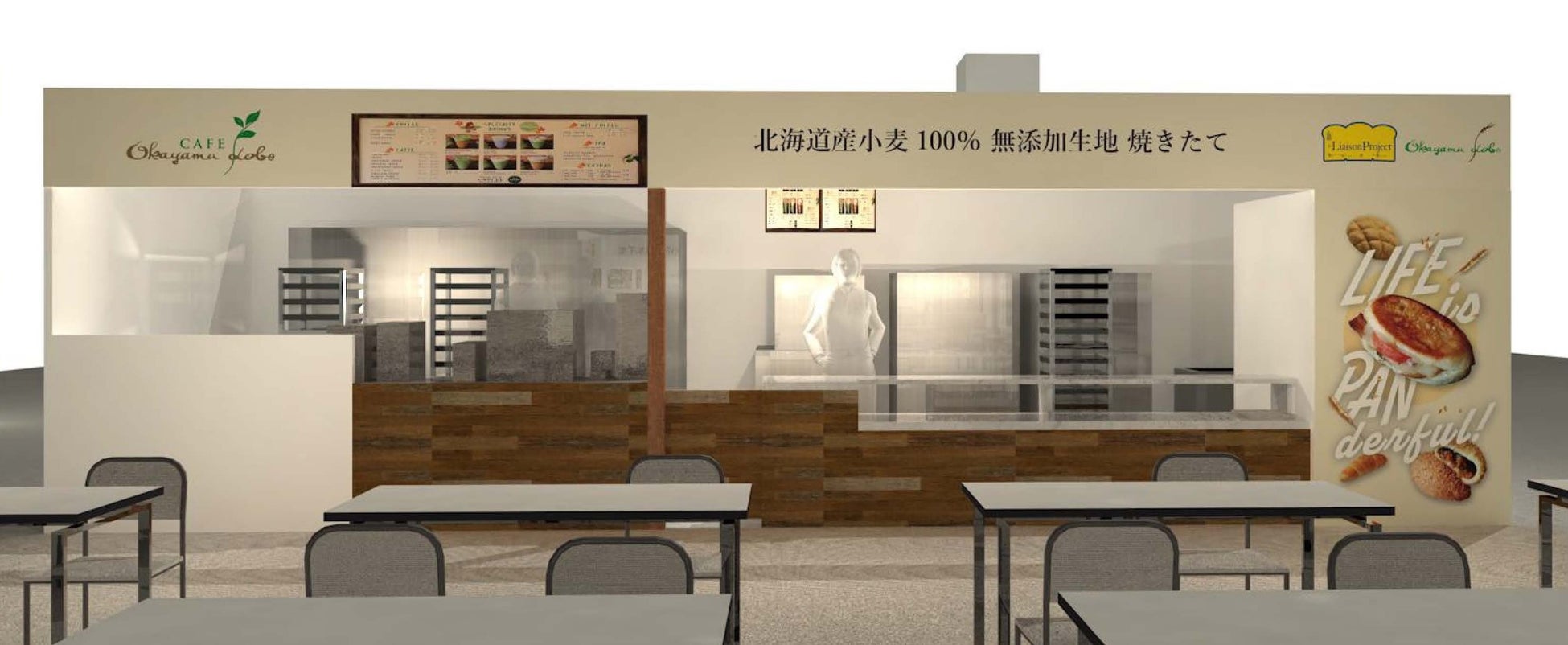 場内のフードコートでは「おかやま工房」が独占販売をすることが決定しており、国産小麦100%、保存料やイーストフード・乳化剤などの添加物を一切加えない無添加生地を使用した手づくりパンの販売を行います。「3たて(焼きたて、揚げたて、作りたて)」にこだわったおかやま工房のパンを、ぜひお楽しみいただければと思います。