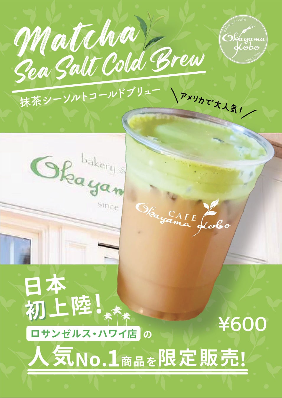 おかやま工房アメリカ直営店3店舗で大人気の抹茶シーソルトフォームをのせたオリジナルラテの「Match Sea Salt Cold Brew」も限定販売いたします。