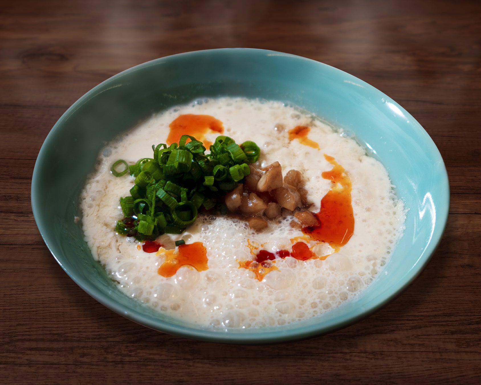台湾で朝ごはんとして愛されており、まったり濃厚な、やわらかな豆乳で、からだを優しく温める、台湾の定番家庭料理『鹹豆漿(シェントウジャン)』と台湾の揚げパン『油條(ユウジョウ)』。