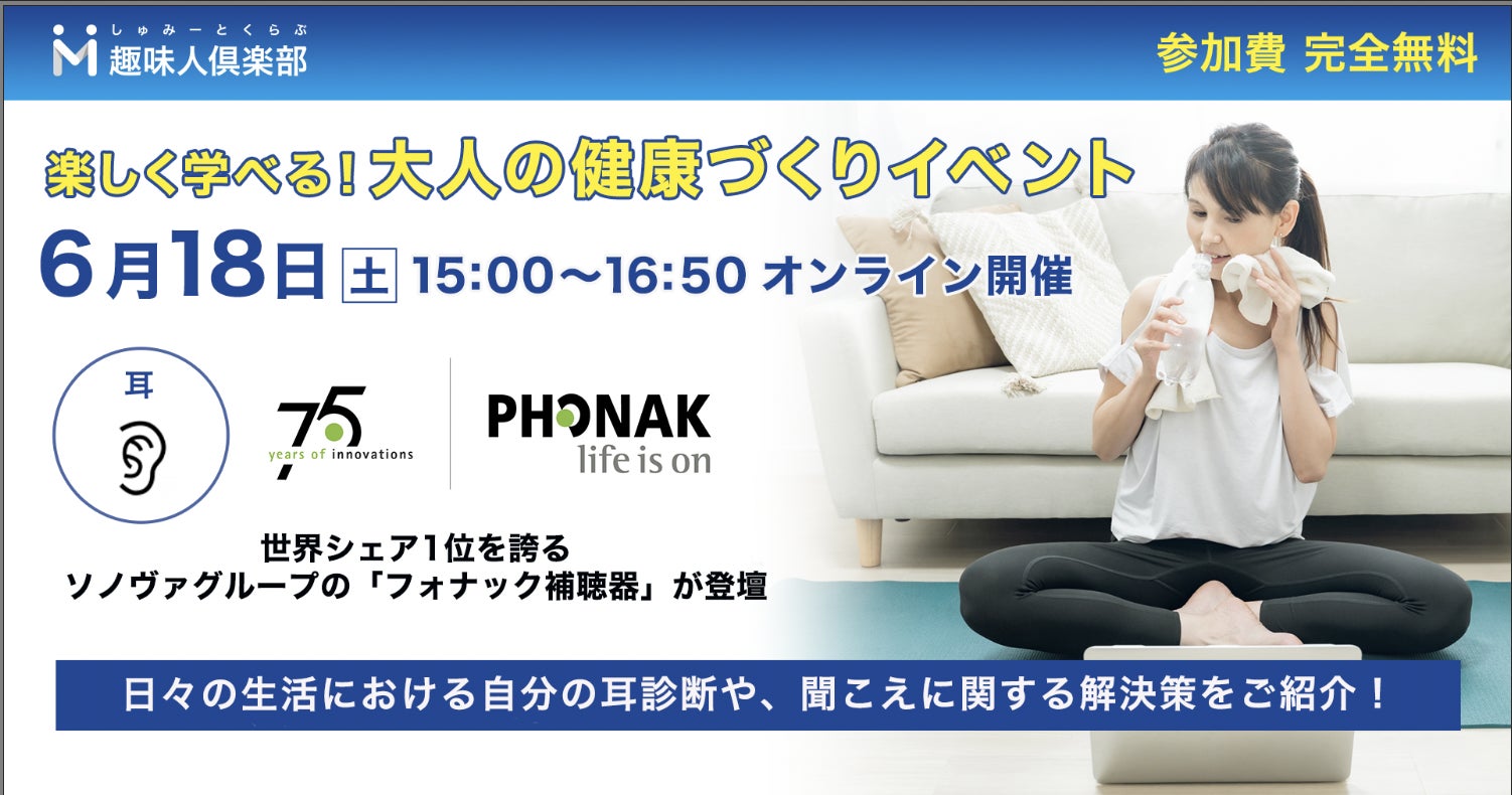 6/18(土)!趣味人倶楽部「楽しく学べる!大人の健康づくりイベント」に、フォナック補聴器が登壇
