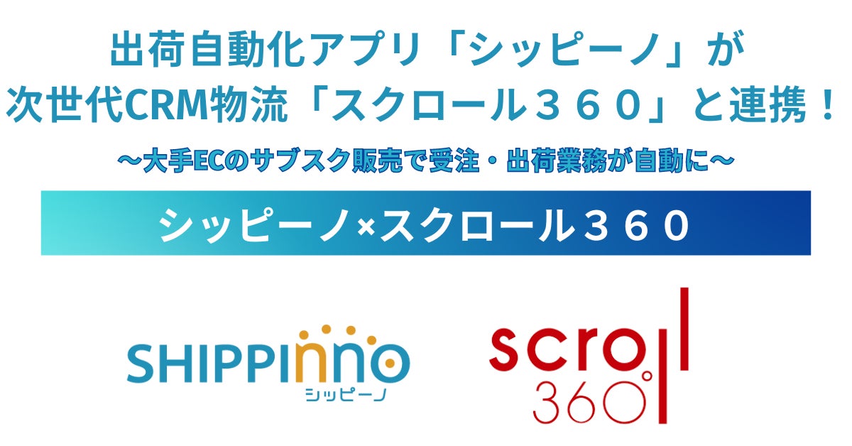 出荷自動化アプリ「シッピーノ」が次世代CRM物流の「スクロール360」と連携!大手ECでのサブスクリプション型販売を得意領域とする物流支援を開始