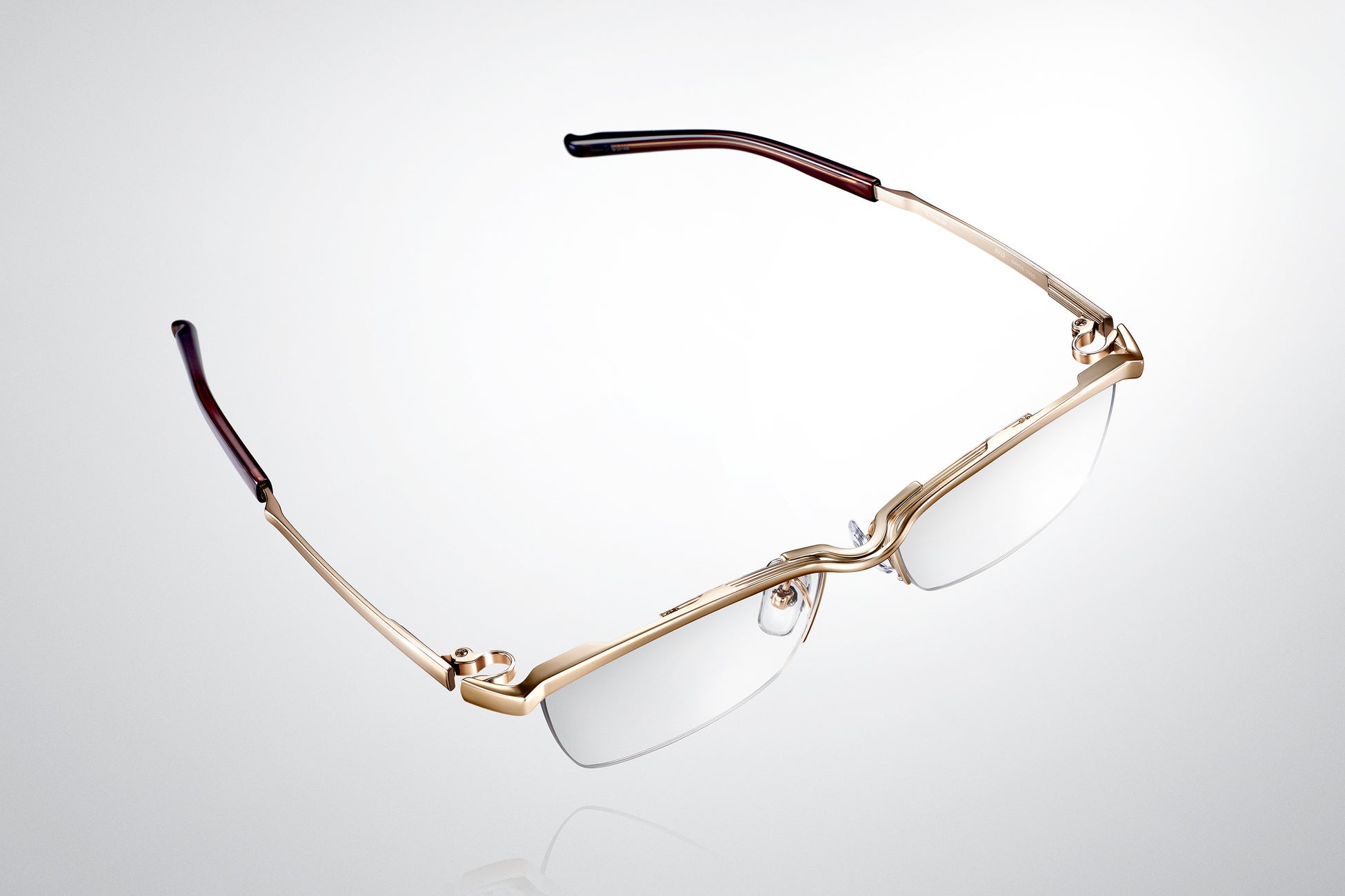2000年発表のO-01Tシリーズ、2012年発表のO-30Tシリーズの流れを受け継ぎ、独特なブロウバーの印象はそのままに、ひとつひとつのパーツの質感やフレーム全体のバランスを磨き上げた、更なる進化を感じさせるワンポイントフレームです。逆Rテンプルがワンポイントフレームにおいても効率的に負荷を解消し、高いホールド感と柔らかな掛け心地を生み出します。