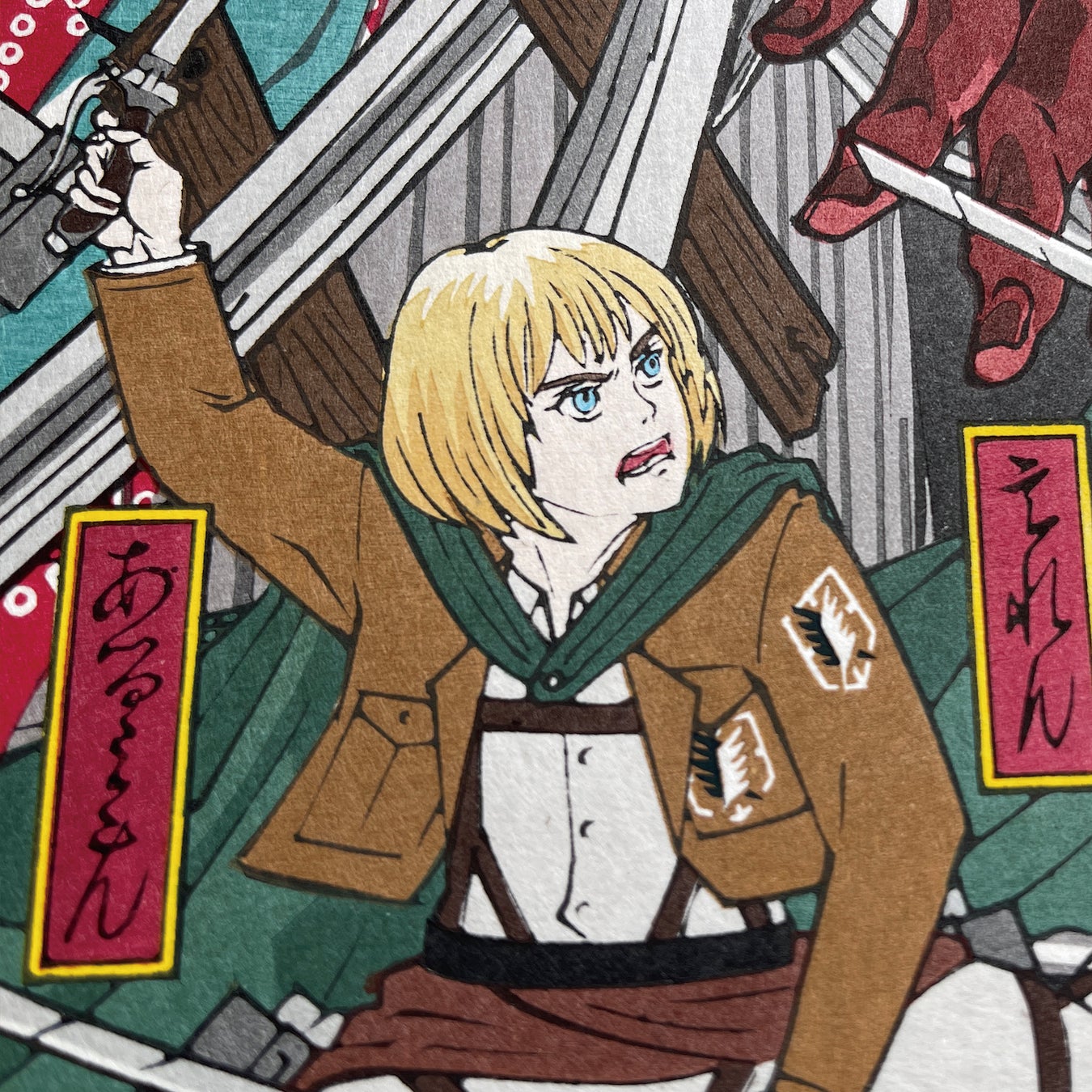 今回、本企画では全世界限定300枚という貴重な作品を製作する際、日本から世界に浮世絵の素晴らしさを伝えるモチーフとして、本作品と「進撃の巨人」の類似性に着目し、企画をしてきました。