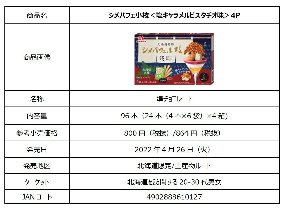 森永製菓株式会社(東京都港区芝、代表取締役社長・太田 栄二郎)は、1971年より発売のロングセラーチョコレート「小枝」から、“札幌シメパフェ”専門店『パフェ、珈琲、酒、佐藤』(北海道札幌市中央区、有限会社アリカデザイン、代表取締役・小林 仁志)とコラボした「シメパフェ小枝<塩キャラメルピスタチオ味>」を4月26日(火)より北海道地区限定で新発売いたします。