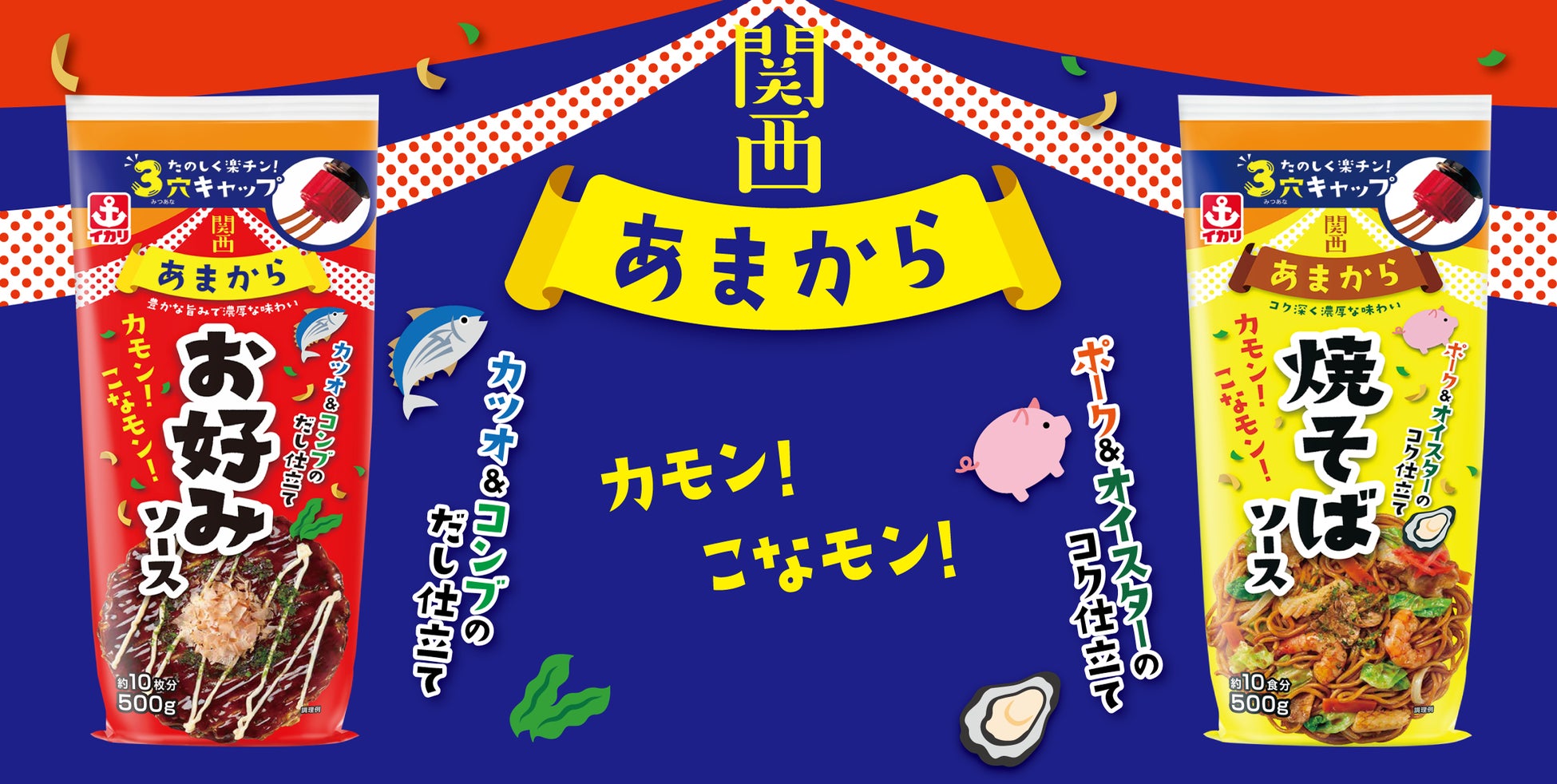 イカリソース株式会社は、2022年8月4日(木)に『関西あまからお好みソース500』および『関西あまから焼そばソース500』を新発売致します。