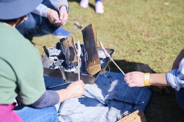 燻製ができるのを待っている間に、日立市の特産品であるりんごや、キャンプの定番・マシュマロを炙る体験もできます。