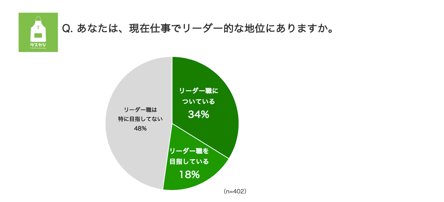 ※「リーダー的な地位」とは①議会議員、②法人・団体等における課長相当職以上の方、③専門的・技術的な職業のうち特に専門性が高い職業に従事する方(医師、歯科医師、薬剤師、獣医師、弁護士、会計士、研究者、記者など)、④起業準備中の方*フリーランスは含みません。(「2030年までに、指導的地位に女性が占める割合が、少なくとも30%程度になるよう期待する」という政府目標における「指導的地位」の定義に準じる)