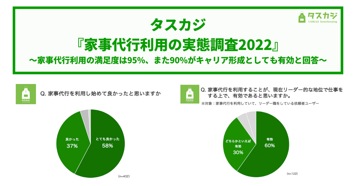 シェアリングエコノミーの家事代行マッチングプラットフォーム「タスカジ」を運営する、株式会社タスカジ(本社:東京都港区、代表取締役:和田幸子、以下タスカジ)は、『家事代行利用の実態調査2022』を発表いたしました。