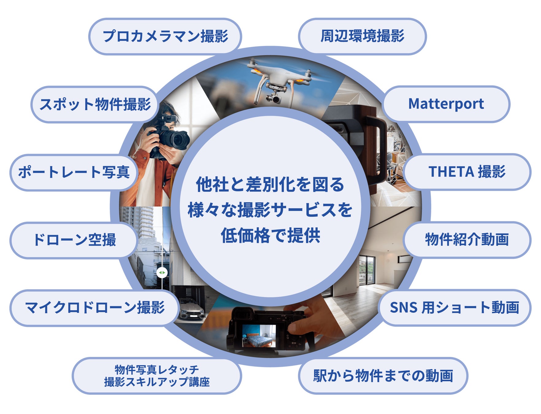 カメラマンのスキマ時間を活用することで、低価格での物件撮影が可能です。