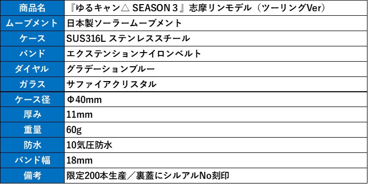 デザインに『ゆるキャン△ SEASON3』の世界観を盛り込んだ、ツーリングからキャンプまで実用的に使えるフィールドウォッチが、200本限定生産で予約開始!