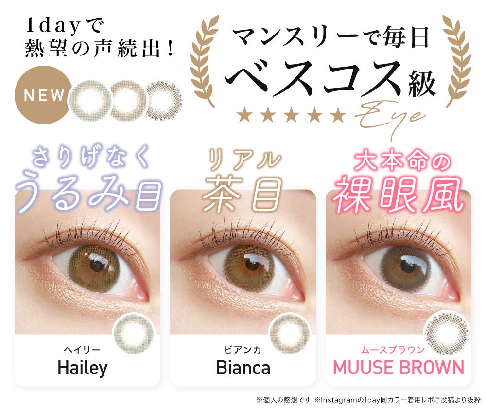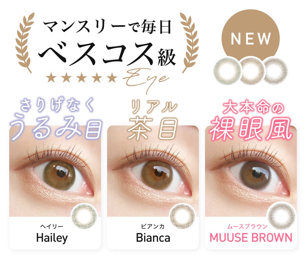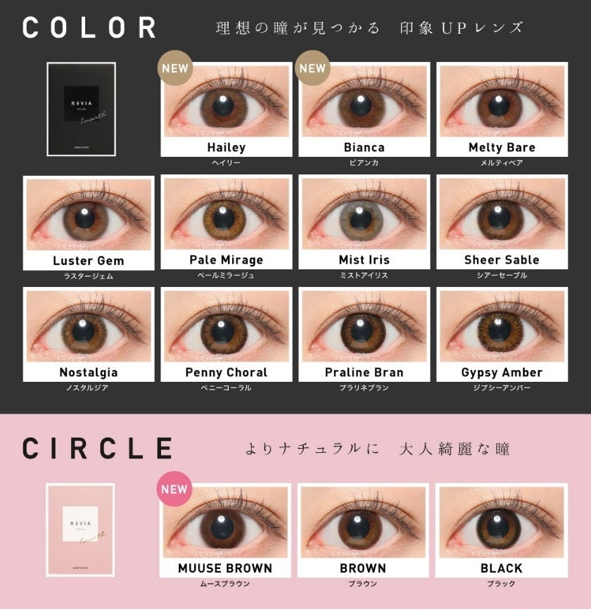 コンタクトレンズブランドReVIA〈レヴィア〉1monthからマンスリーで毎日 “ベスコス級!”1dayタイプで大人気の3色が新発売!