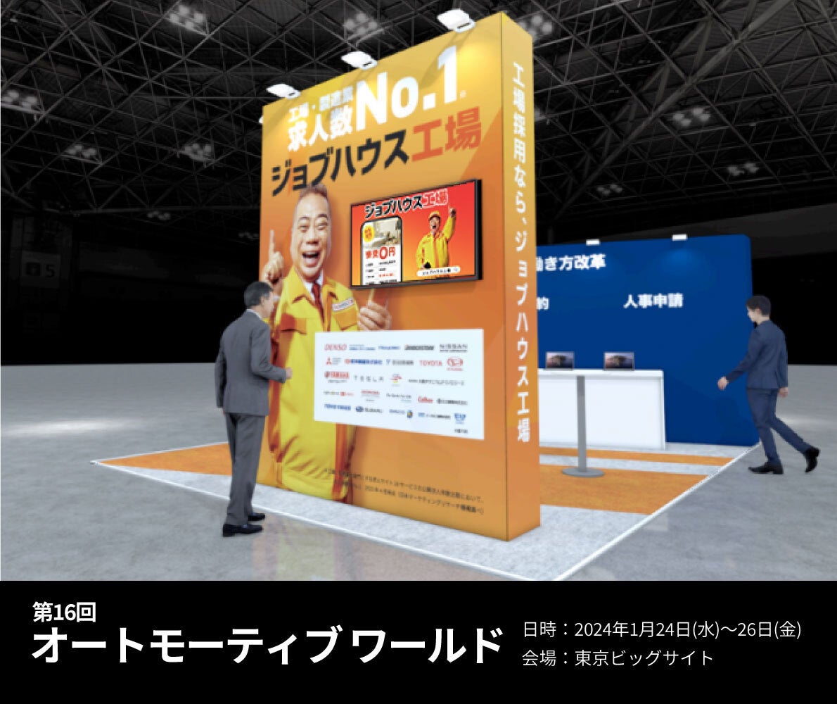 『ジョブハウス工場』・『クラウドハウス労務』を運営する株式会社Techouse(本社所在地:東京都港区、代表取締役社長:礒邉 基之)は、2024年1月24日(水)〜1月26日(金)までの3日間、「第16回 オートモーティブ ワールド」に出展いたします。