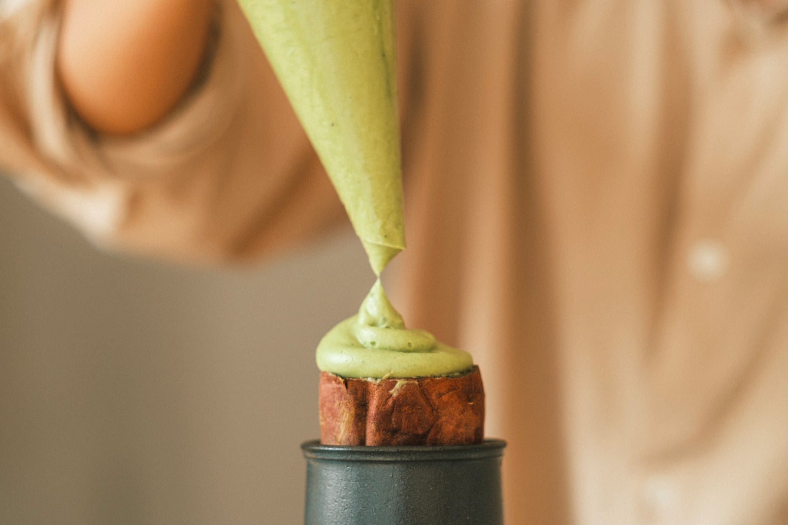 蜜芋ブリュレは、人気の壺芋ブリュレの味わいはそのままに、濃蜜なお芋とクリームブリュレが解凍なしで気軽に楽しめる、お芋スイーツです。解凍なしで召し上がるのはもちろん、お好みの食感に解凍をしてお楽しみいただけます。ひと口サイズで、ちょっとしたおやつにもぴったりな一品。全国のお客様にお楽しみいただけるよう、Creaimo公式販売サイトにて、蜜芋ブリュレの夏限定フレーバー「美濃加茂茶舗のほろ苦煎茶クリーム」を提供します。