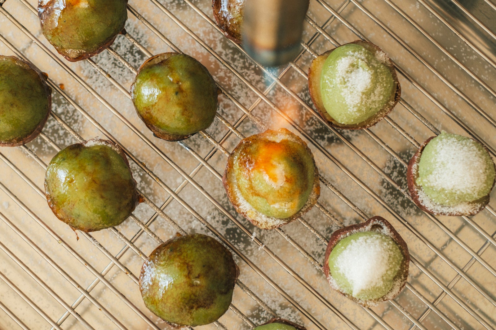 壺芋ブリュレは、従来の焼き芋のイメージを覆すほどに柔らかい壺焼き芋に、クリームをたっぷり詰めてブリュレしたお芋スイーツ。初登場「美濃加茂茶舗のほろ苦煎茶クリーム」は、ホワイトチョコクリームに、私たちと同じ岐阜美濃加茂で活動する「*美濃加茂茶舗」の香り豊かな“煎茶”を合わせた、新緑の季節ならではの爽やかさとほろ苦さがたまらない期間限定フレーバーです。初夏のお手土産としても、涼しげな和のひとときをお楽しみいただけます。