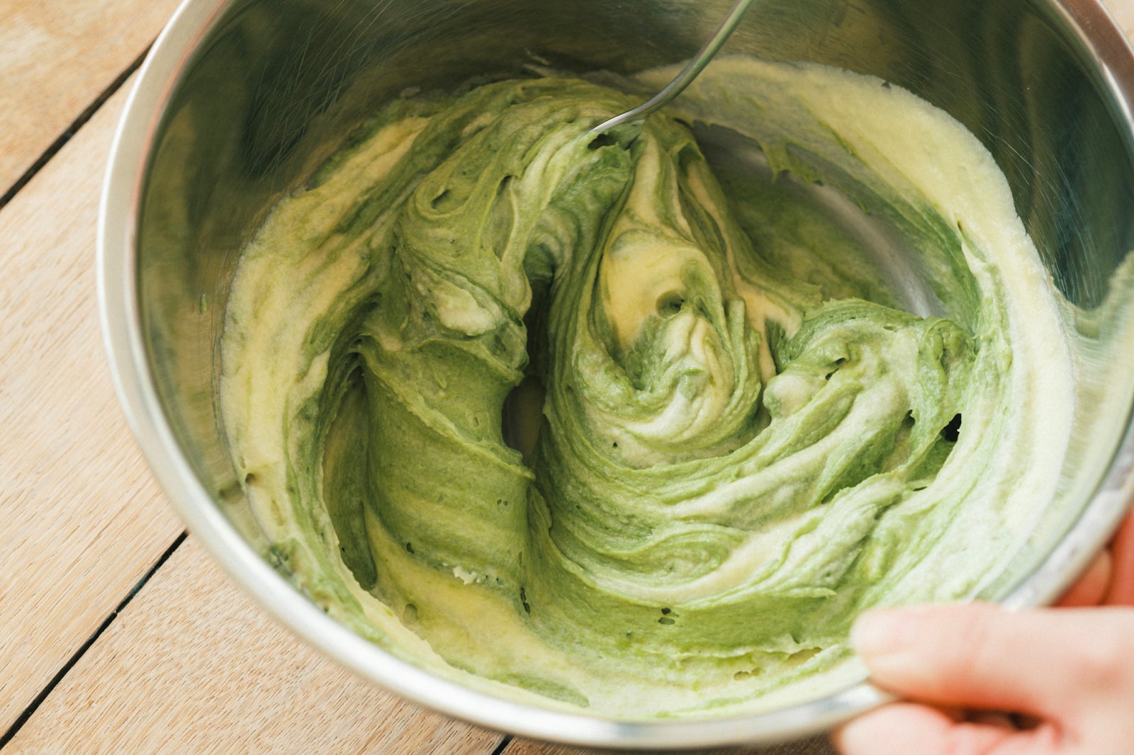今回の煎茶クリームで使用する茶葉は全て、Creaimoと同じ岐阜美濃加茂を拠点に活動する「美濃加茂茶舗」のもの。4月〜5月に収穫が始まる新茶の時期に合わせ、爽やかでほろ苦い味わいのクリームを目指しました。煎茶の渋みと香りに、ホワイトチョコレートのまろやかさを効かせた限定フレーバーをお楽しみください。美濃加茂茶舗のお茶が栽培される東白川村は、標高が高く、太陽光も強いため効率的に光合成が行われます。夜間に気温がぐっと冷え込むため、お茶は味も香りも豊かになります。 そんな茶葉を使った煎茶クリームは、鮮やかな色合い、爽やかな香りとほろ苦い味わいが特長です。尖った苦味がなく、清涼感のある甘みが特徴の煎茶を使った極上の一品を、ぜひご堪能ください。